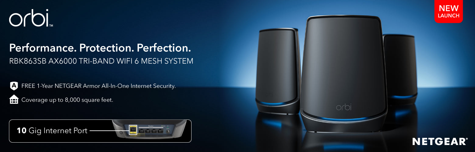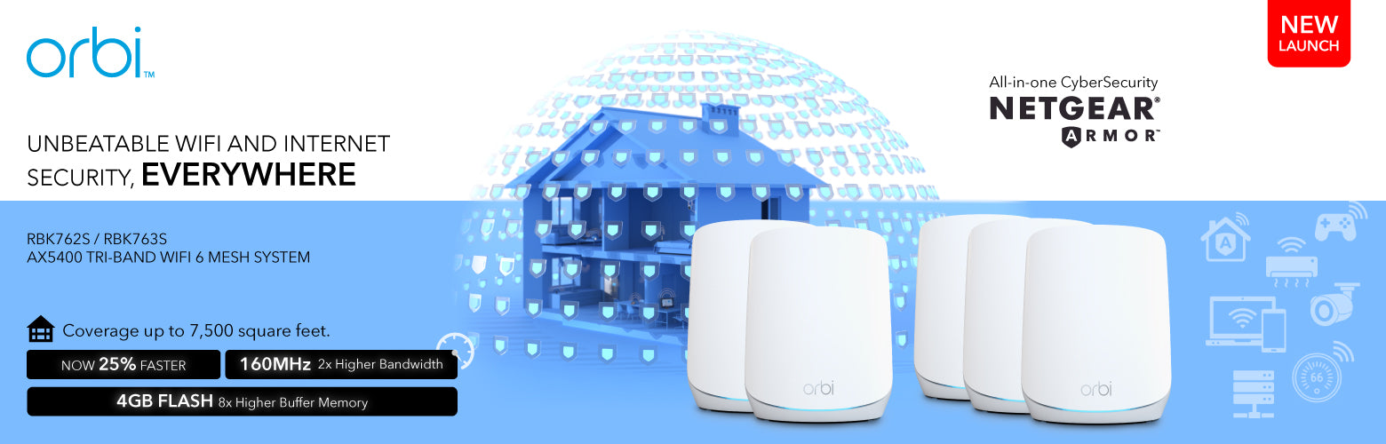 Orbi RBK763S 5.4Gbps Triband 3-Pack WiFi 6 Mesh System with 1-Year Armor